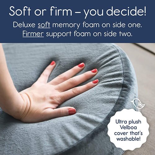 SUAVE OU FIRME… VOCÊ DECIDE: Design de 2 faces para se adequar às mães durante os 3 trimestres. Espuma de memória macia e luxuosa no lado 1 e espuma de suporte mais firme no outro lado 2. Conforme suas necessidades e desejos mudam de momento para momento, basta virá-lo para recuperar o máximo de conforto.