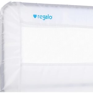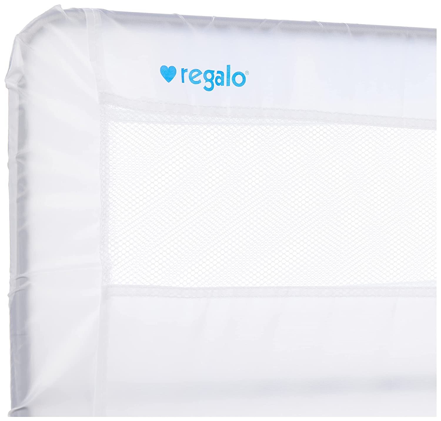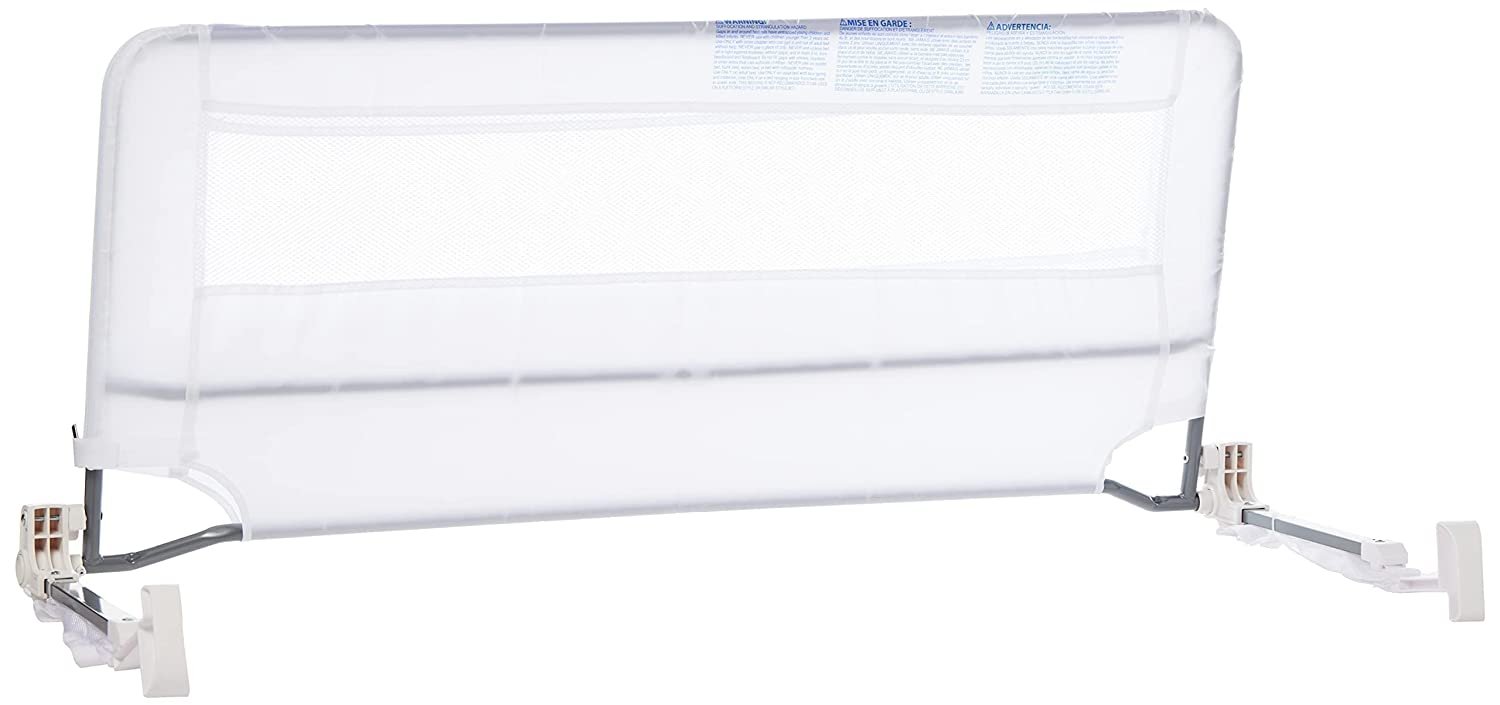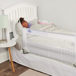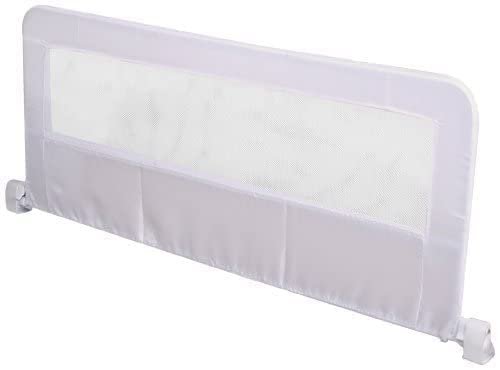 Esta proteção de cama é ideal para crianças que ainda precisam de proteção contra rolar para fora da cama. Feito de uma estrutura de aço e coberto com uma capa de nylon e malha, o trilho da cama mede 51 cm de altura e se estende por 109 cm. Não requer ferramentas para montagem e trava no lugar para maior segurança. Quando não estiver em uso, o trilho oscila para baixo e para fora do seu caminho, facilitando o acesso à cama.