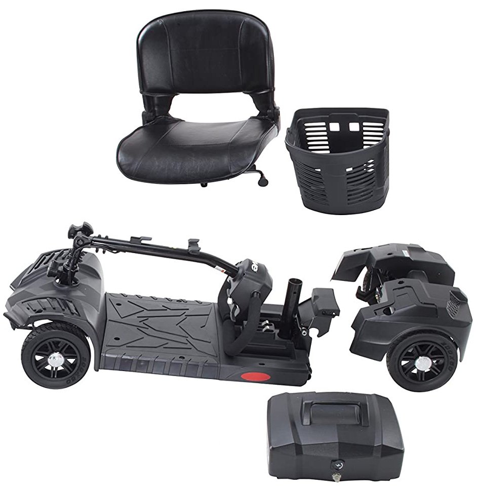 Esta scooter combina fácil mobilidade e conveniência. É compacto, leve e fácil de desmontar – perfeito para levar para onde você quer ir, pelos parques ou nas compras em Orlando. Ele pode ser desmontado de maneira rápida e fácil em cinco peças fáceis de manusear para carregar em um carro. A versão de quatro rodas permite maior estabilidade em terrenos acidentados ao ar livre. Esta scooter também oferece ótimos recursos, como uma bateria de conexão rápida e uma alavanca tipo delta para facilitar a operação da scooter para pessoas com força ou destreza limitada.