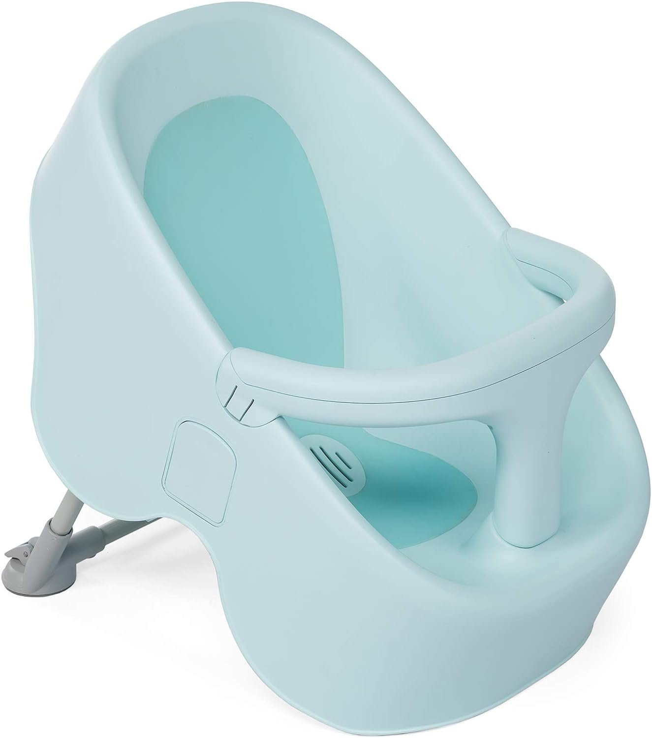 Barra em T para proteção extra. Assento com borracha macia para evitar que o bebê escorregue.
