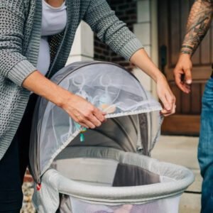 Capota para um ambiente aconchegante, ajustável em diversas posições e possui um compartimento com zíper para armazenar o mosquiteiro para proteger dos insetos, a barra de brinquedos é removível e possui dois brinquedos macios, um com efeito crocante e um com efeito de sinos de vento, os pés podem ser ajustados na função balanço ou fixa para divertir ou acalmar, até mesmo tirar aquela soneca rápida, o colchonete muito macio, é temático e pode ser retirado e usado como um divertido tapete de atividades, que ajuda a estimular o bebê a se esticar e pode ser usado no tummy time.