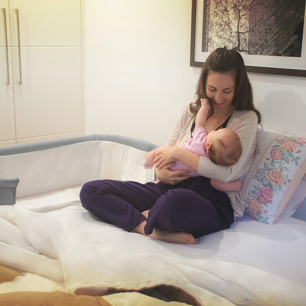 Berço acoplável a cama dos pais, facilita a amamentação noturna, melhora a qualidade do sono dos pais e do bebê e permite tranquilizar rapidamente o bebê durante a noite.