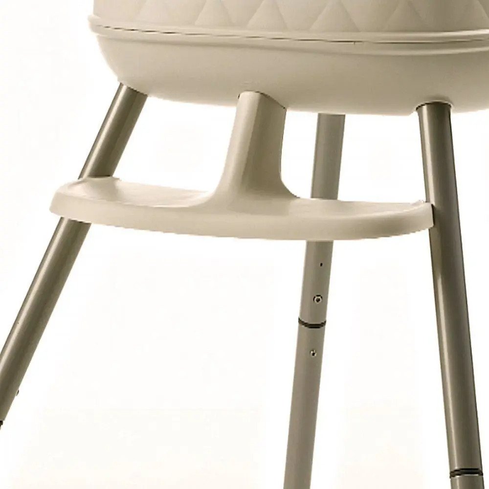 O assento e o apoio para os pés são ajustáveis de acordo com o tamanho da criança, podendo ser removido o encosto de pé quando o mesmo não tiver mais uso.