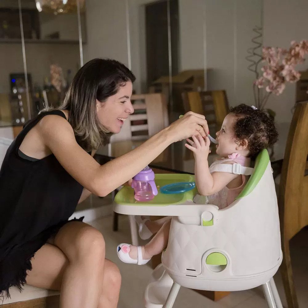 Cadeira 3 em 1, se transforma de cadeira alta, booster de alimentação e cadeirinha infantil.