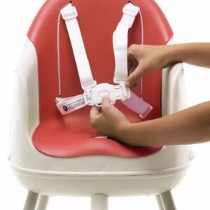 Cadeira de alimentação portátil que ajusta-se ao tamanho da criança.
