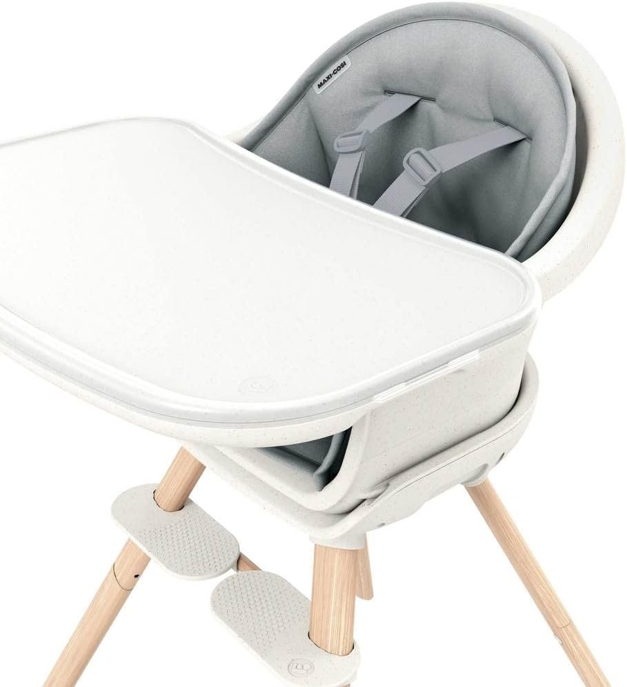 Fácil de usar: MOA se reconfigura de 8 maneiras diferentes. Todo pai ou mãe sabe que a hora da alimentação é uma bagunça. Mas com sua capa impermeável e lavável à máquina, a bandeja que pode ir para máquina de lavar louças e os cintos também laváveis, fica fácil e rápido manter tudo completamente limpo.