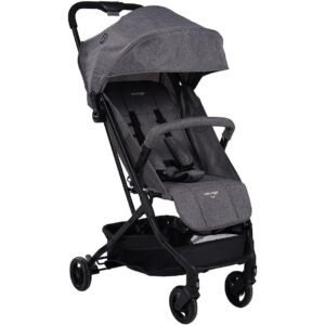 sendo mais leve. Conta com ajuste para o apoio dos pés, barra frontal removível e ampla capota com visor, retrátil e tecido com UV+, que vai oferecer a proteção necessária nos dias mais ensolarados. Tem ainda cinto de cinco pontos com ajuste de altura e largura, rodas dianteiras giratóriasc 360°, com trava de movimento, freios interligados e cesto porta-objetos com capacidade para 2 kg.
