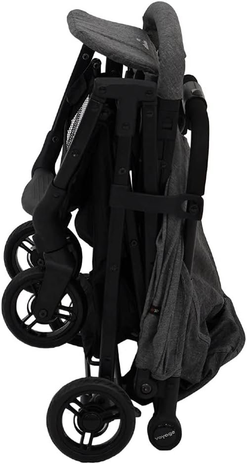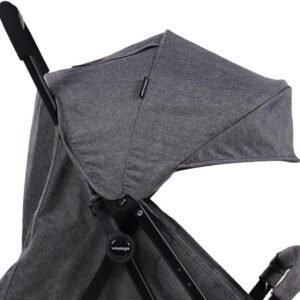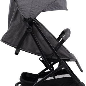 Fechamento compacto estilo pocket, com apenas uma das mãos e alça telescópica para facilitar o transporte. Capota extensível com visor e proteção solar UV+.