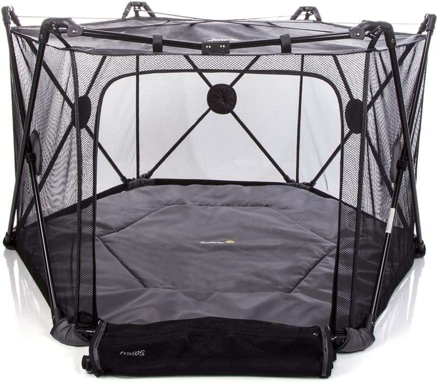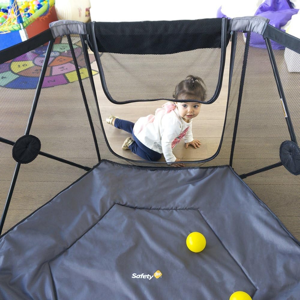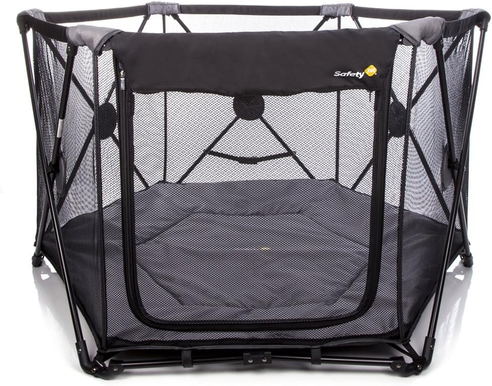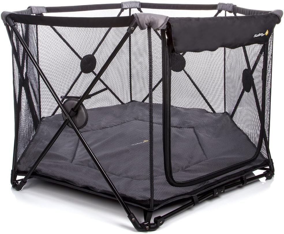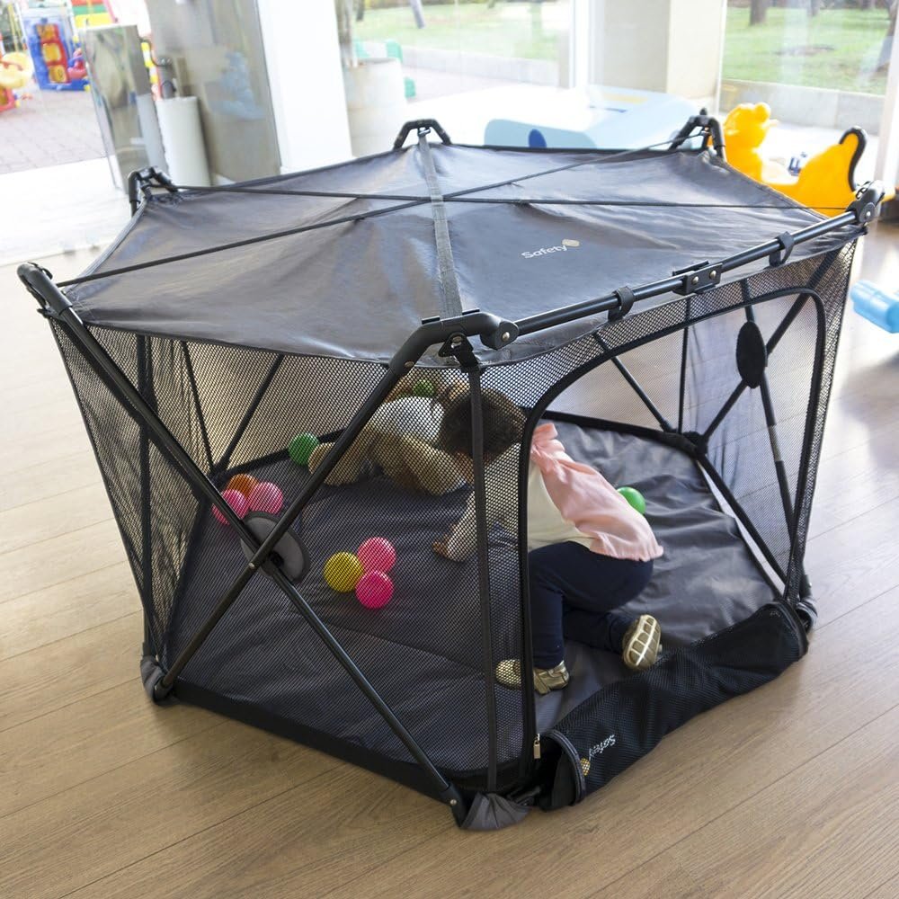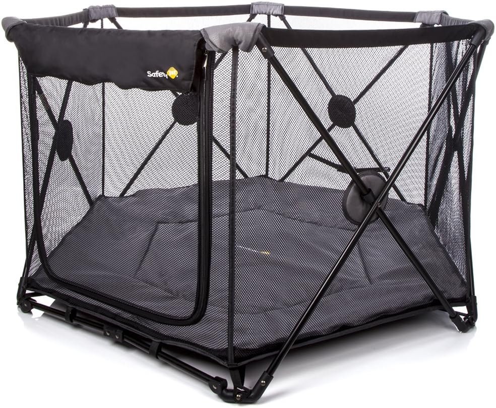 Pode ser usado como um cercadinho ou como uma toca se invertido, o tapete é removível para utilizar nestas duas funçoes, telas laterais que permitem a visão da criança e tem abertura lateral com zíper.