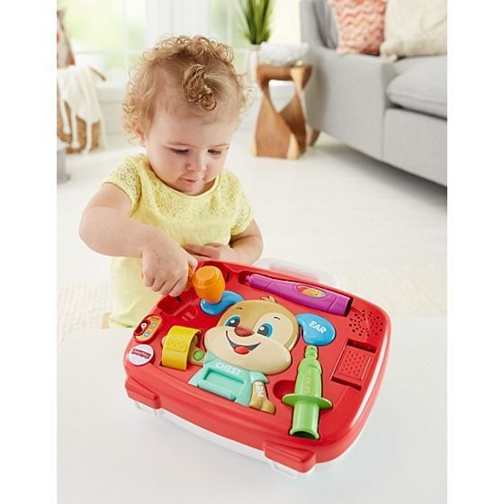 Esse kit de médico interativo oferece uma dose de aprendizado e imaginação ao brincar para o seu pequeno médico. Conforme os pequenos fazem uma consulta no seu amigo Puppy, eles escutam musicas e frases divertidas que ensinam sobre diferentes partes do corpo, cores, palavras em inglês e mais! E mais, com três níveis de Smart Stages™, a diversão muda conforme a criança se desenvolve! Onde o desenvolvimento se transforma em diversão™ Aprendizado: Através de músicas e frases divertidas, as crianças aprendem sobre as partes do corpo, cores, hábitos saudáveis, inglês e muito mais. Criatividade e imaginação: As crianças poderão exercitar toda a sua imaginação ao brincar de médico com o Puppy (ou você!). Segurança & Felicidade: Ao explorar todas as ferramentas do ofício para ajudar o Puppy, o seu pequeno poderá se sentir mais seguro na sua próxima visita ao médico.