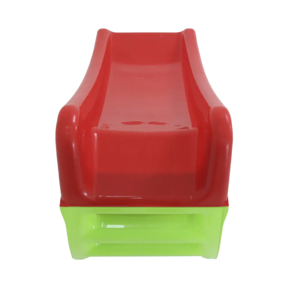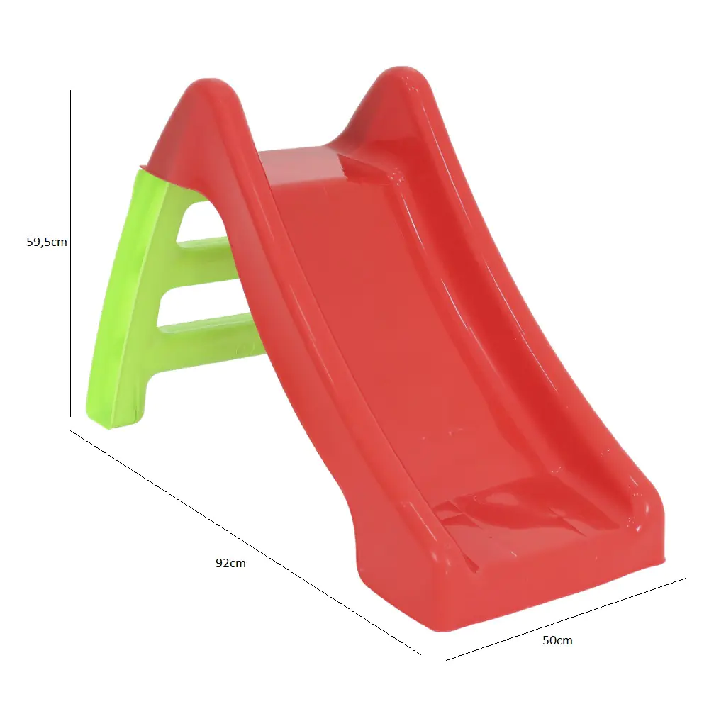 Escorregador infantil pequeno, com 2 degraus para acesso ao escorregador.