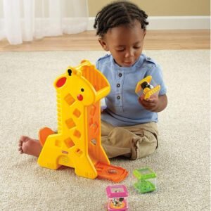 O bebê pode empilhar os blocos na Girafa ou jogá-los dentro dela.