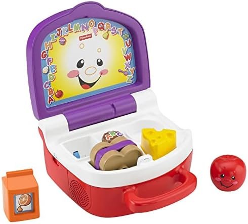 Abra e feche a tampa para aprender sobre opostos, aperte o biscoito para ouvir canções e organize as peças de alimentos (suco de laranja, maçã, sanduíche e queijo) para ativar o conteúdo educativo.