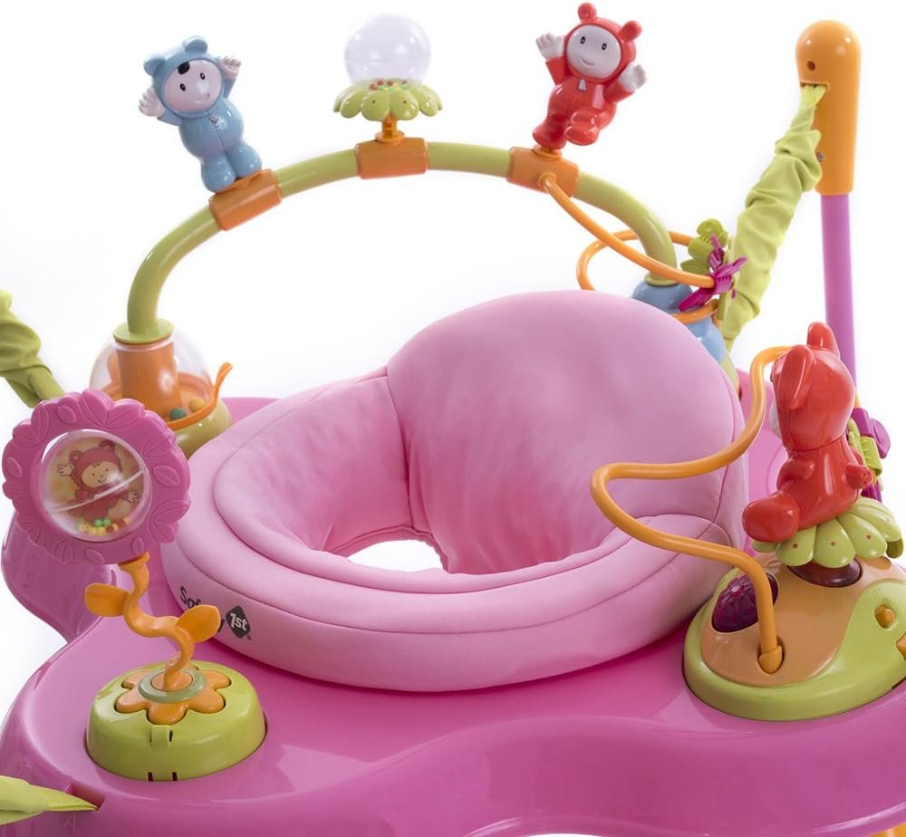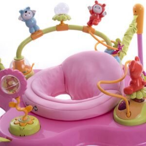 Jumperoo com efeitos de sons e luzes, assento giratório em 360º e barra de brinquedos interativos que irão divertir o bebê por muito tempo.