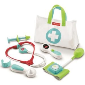 – O Kit Médico da Fisher Price possui 7 peças do jogo! Inclui estetoscópio, braçadeira de pressão arterial, termômetro, otoscópio, seringa, braçadeira de curativo e bolsa de tecido “médico”.