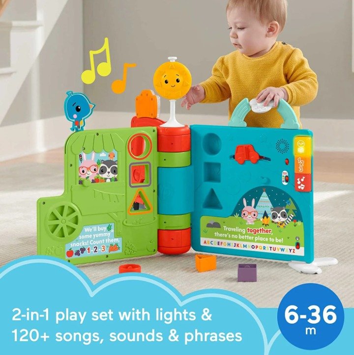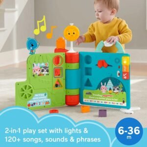 – Brinquedo de aprendizagem eletrônico 2 em 1 que se transforma de um livro de histórias sentado em um centro de atividades robusto e vertical com 360 graus de jogo