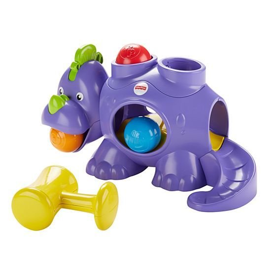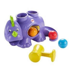 O desenvolvimento do bebê cresce em grandes proporções com tanta brincadeira!Esse amigo pré-histórico incentiva a coordenação motora e a curiosidade do bebê. Basta colocar as bolas na parte traseira do dinossauro para que a criança possa usar a marreta para colocá-las em sua barriga. É aí que a diversão começa de verdade, quando o bebê tenta decidir para onde vão as bolas! Será que vão descer pela cauda do dinossauro ou sair pela boca? A criança vai ficar atenta, correndo atrás das bolas até cansar. (E ela nunca se cansa!)