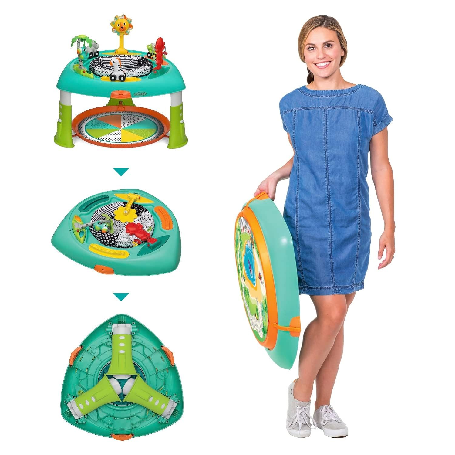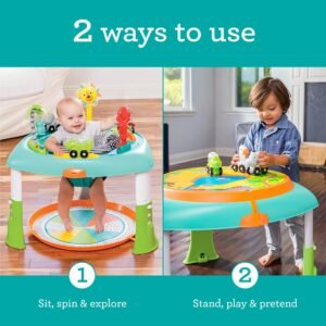 Possui cadeira giratória de 360 graus com 6 brinquedos interativos espalhados pela mesa de atividades que conta com botões emocionantes e efeitos musicais, para manter seu bebê envolvido enquanto brinca e aprende.