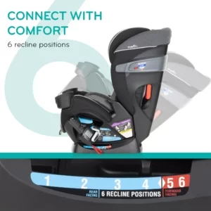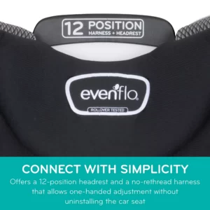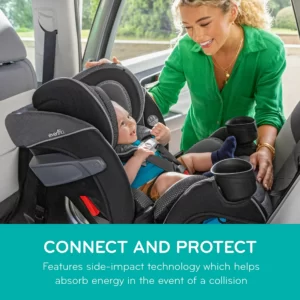 Conheça o assento de carro projetado para sua vida digitalmente conectada: o assento de carro Evenflo® All4One™ 4 em 1 com SensorSafe™. Apresentando a tecnologia SensorSafe integrada para mantê-lo conectado ao seu filho do banco de trás em tempo real. O apoio de cabeça All4One permite que você escolha entre 12 posições, e um arnês sem rosca permite o ajuste com apenas uma mão – não há necessidade de desinstalar o assento do carro para fazer o trabalho. O All4One também está equipado com SensorSafe para enviar mensagens em tempo real para o seu telefone, alertando-o sobre condições potencialmente inseguras no carro, incluindo desafivelamento inesperado do clipe no peito, temperatura insegura, criança desacompanhada no carro e criança sentada por muito tempo. Então, quando seus olhos estão na estrada, você pode manter essa conexão vital entre pais e filhos. O All4One possui tecnologia de impacto lateral que ajuda a absorver energia em caso de colisão. O travesseiro de pelúcia foi projetado para apoiar adequadamente a cabeça do seu filho, e o acolchoamento da cabeça e do corpo é removível para facilitar a limpeza. As guias do cinto de ombro posicionam corretamente o cinto do veículo sobre o ombro do seu filho para garantir um ajuste preciso no modo de reforço. Para maior comodidade, os porta-copos integrados mantêm as bebidas ao alcance do seu filho. Conecte-se com o All4One. É tudo o que você precisa em um assento de carro!