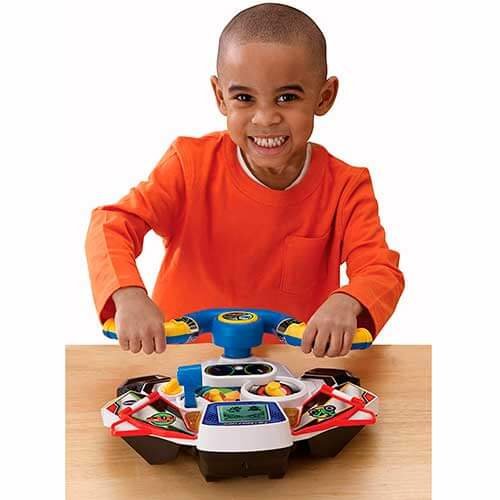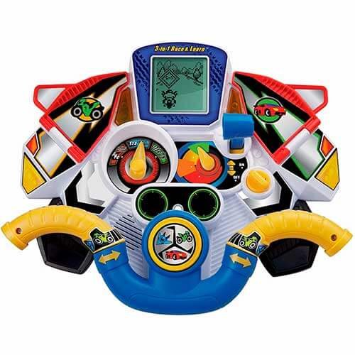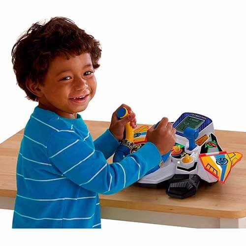Dirija, corra e voe para a aventura com o Simulador 3 em 1 da Vtech! O console de direção ensina letras, palavras, fonética, números e muito mais! Jogue jogos de corrida e vôo enquanto efeitos especiais de som e vibração simulam a direção real, aprimorando a aventura de RPG! Também estão incluídos recursos amigáveis ??para os pais, como controle de volume, um design durável e desligamento automático.