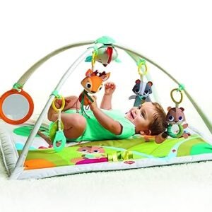 O bebê pode ficar deitado de barriga pra cima ou de bruços. Os brinquedos eletrônicos são removíveis, podendo ser levados para onde quiser. O espelho estimula o bebê a passar mais tempo de bruços do bebê, o que fortalece os músculos.