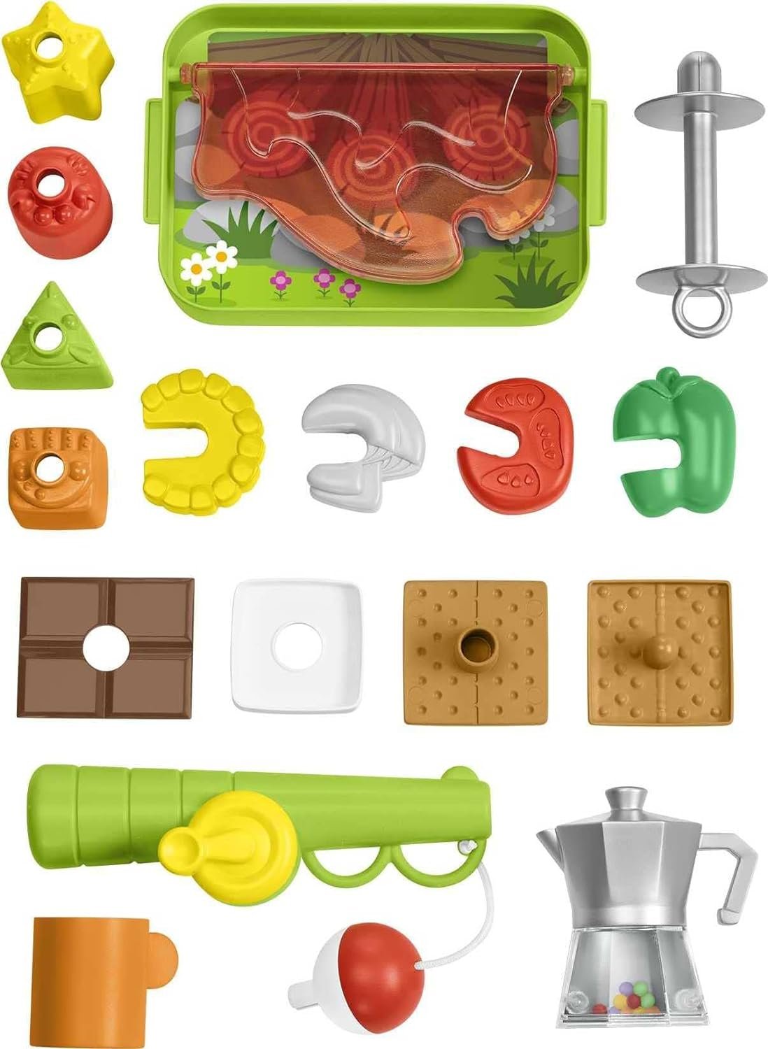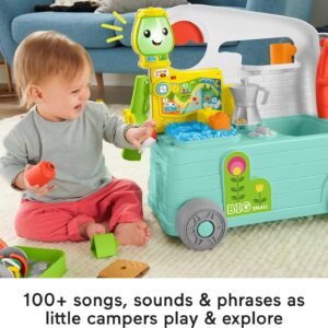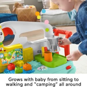 Este centro de atividades musical tem 3 níveis de aprendizado Smart Stages cheios de músicas, sons, luzes e frases divertidas sobre letras, cores, contagem e formas, além de 10 peças removíveis para dar vida à brincadeira de acampamento.